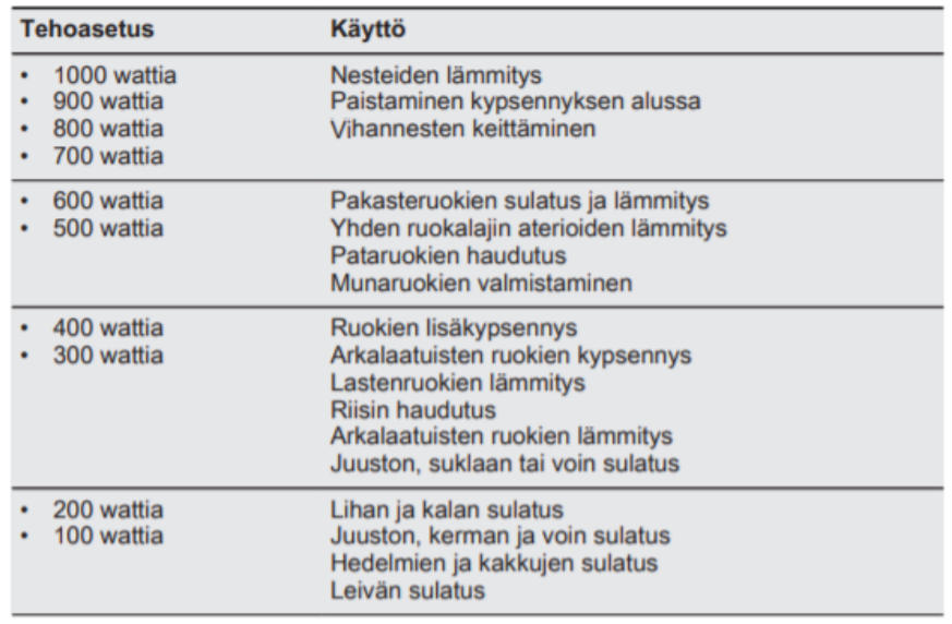 - Tarkista oikea tehoalue käyttöohjeesta lämmitettävälle ruoalle.