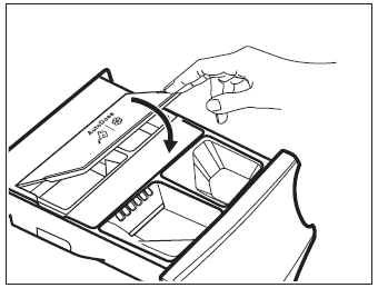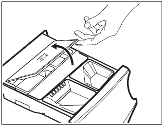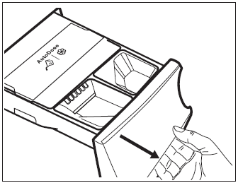 2. Avaa pesuainelokero varovasti vetämällä ja nosta AutoDose-pesuainelokeron kansi ylös.