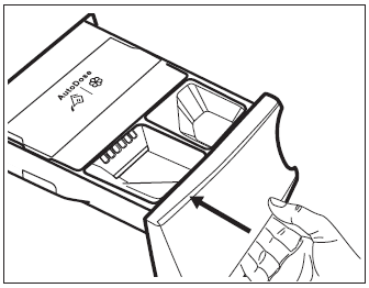 7. Laita AutoDose-kansi alas ja sulje pesuainelokero varovasti työntämällä, kunnes se napsahtaa.