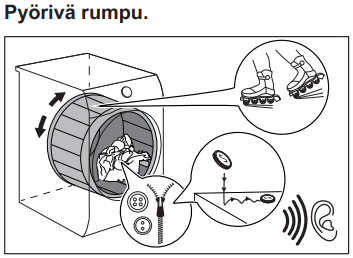 Jos kuivausrummusta kuuluu epätavallisia ääniä, toimi alla olevien ohjeiden mukaan:
