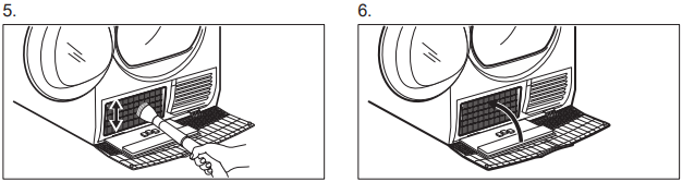 2. Puhdista kuivausrummun nukkasihti ja lauhdutin säännöllisesti ja huolellisesti käyttöohjeiden mukaisesti.