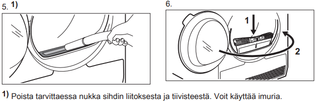 4. Varmista, että luukun aukossa olevassa tiivisteessä ei ole nukkaa.