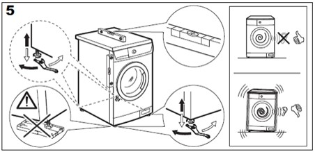 2. Tasapainota pesukone nostamalla tai laskemalla jalkoja.