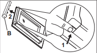 6. Pidä kiinni ovilistasta (B) oven yläosassa molemmilta puolilta ja työnnä sisäänpäin vapauttaaksesi pidikkeen lukon.