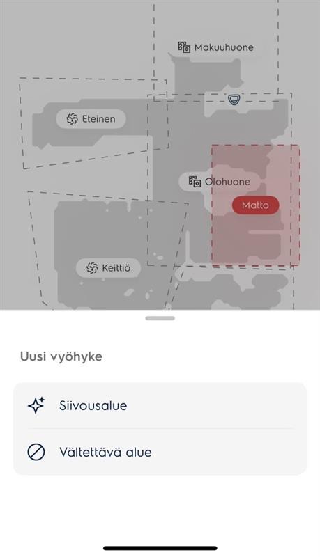 - Valitse joko Siivousalue tai Vältettävä alue.