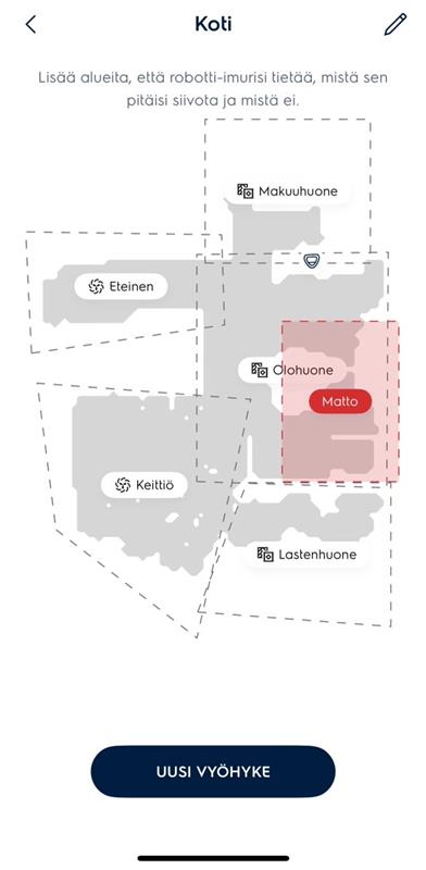 Vyöhykkeiden luominen robotti-imurille sovelluksessa