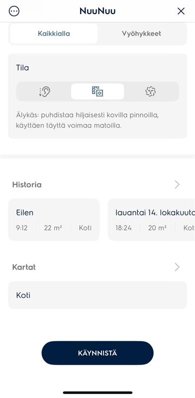 - Onko huomiota erityisesti kiinnitettävä johonkin, kun robotti-imuri imuroi ensimmäistä kertaa?